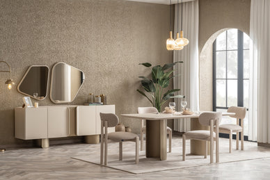 Комплектът за хранене Alanya предлага освежаваща смесица от меки неутрални цветове, гладки линии и внимателно обмислени детайли, което го прави идеален централен елемент за модерни домове.