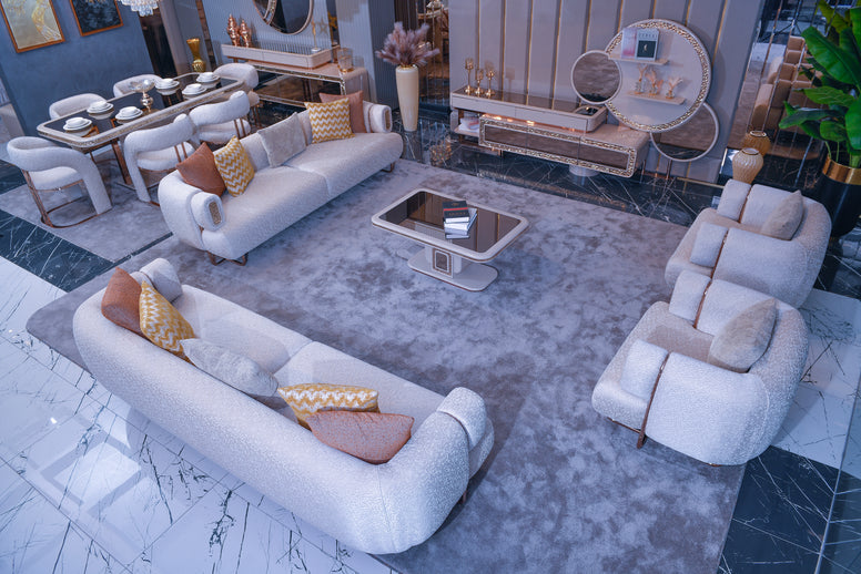 Идеален за луксозни апартаменти, вили или съвременни домове , този комплект съчетава висококачествена изработка с вечна модерна естетика. Независимо дали сте домакин на събирания или се наслаждавате на тихи вечери, този комплект за хол създава атмосфера на изтънченост и комфорт.
