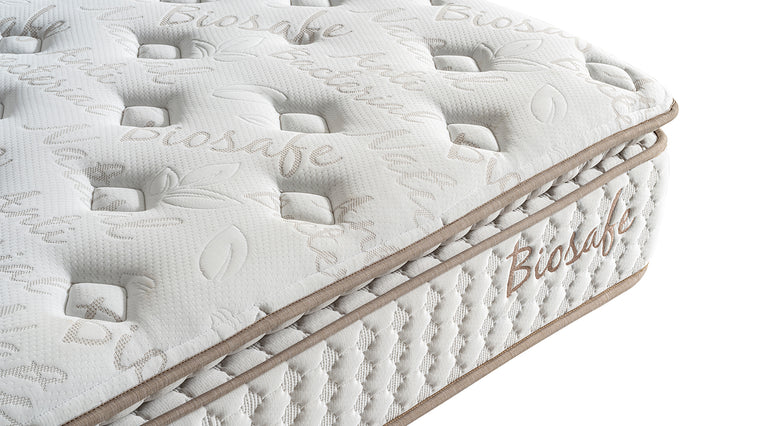 Матракът Biosafe е проектиран с оглед на здравето и хигиената, предлагайки антибактериална технология на тъканите, съчетана с усъвършенстван ергономичен комфорт. Дишащата му, мека на допир повърхност поддържа средата ви за сън чиста и свежа, докато поддържащите пружини и слоеве от пяна осигуряват перфектния баланс между комфорт и стабилност.