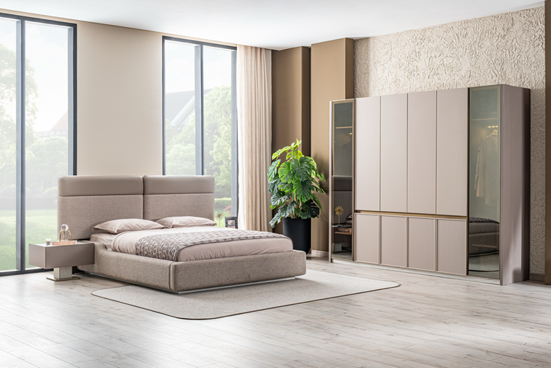 Спалният комплект Carmen съчетава изчистени, модерни линии с мека, неутрална палитра, създавайки успокояваща и изискана атмосфера. С внимателно интегрирано място за съхранение, първокласни покрития и амбиентно осветление, той превръща спалнята ви в пространство, съчетаващо стил и комфорт.