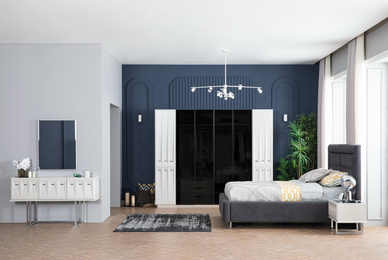 С интелигентни решения за съхранение, първокласни покрития и елегантни геометрични акценти, той превръща спалнята ви в стилно и функционално убежище.