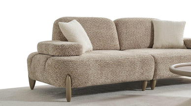 • Заоблени, модерни линии с уютна материя в стил букле.