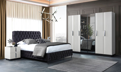 • Просторен гардероб с огледални врати и елегантни оребрени детайли